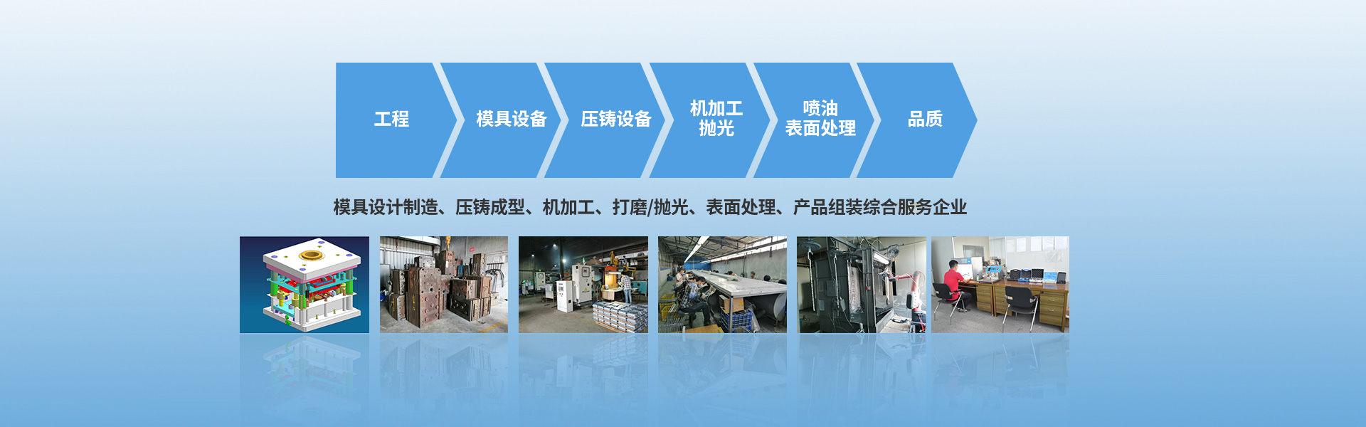 公司現(xiàn)有模具部、壓鑄部、機加工部、拋光打磨部,建廠以來,得益于生產(chǎn)方式、技能、管理的持續(xù)改進,我們的業(yè)務(wù)不斷擴大,取得了平穩(wěn)的發(fā)展。