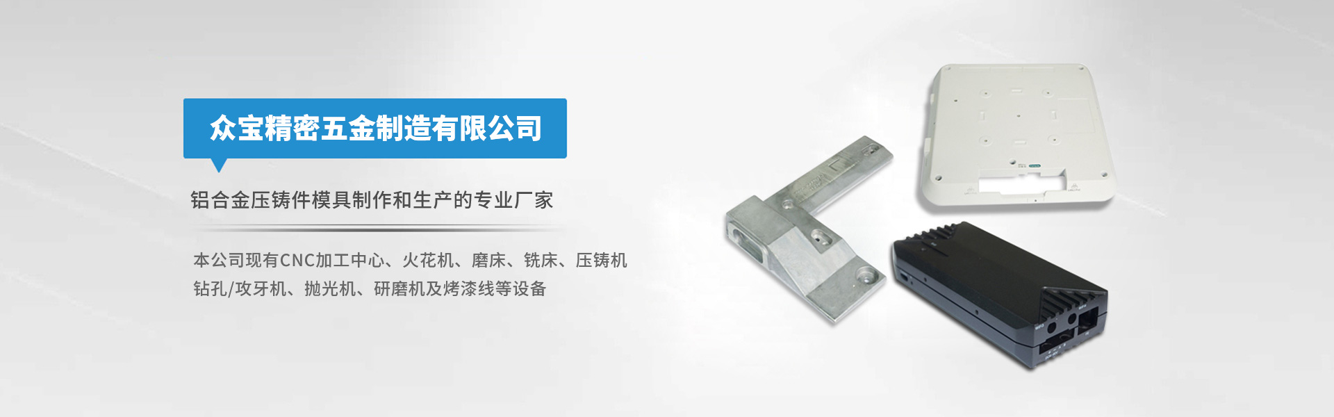 東莞市東城眾寶精密五金制造有限公司 鋁合金壓鑄件模具制作和生產(chǎn)的專業(yè)廠家 實現(xiàn)從圖紙-模具-壓鑄-機加-清理-拋光研磨以及表面噴油處理一站式的優(yōu)質(zhì)服務(wù)